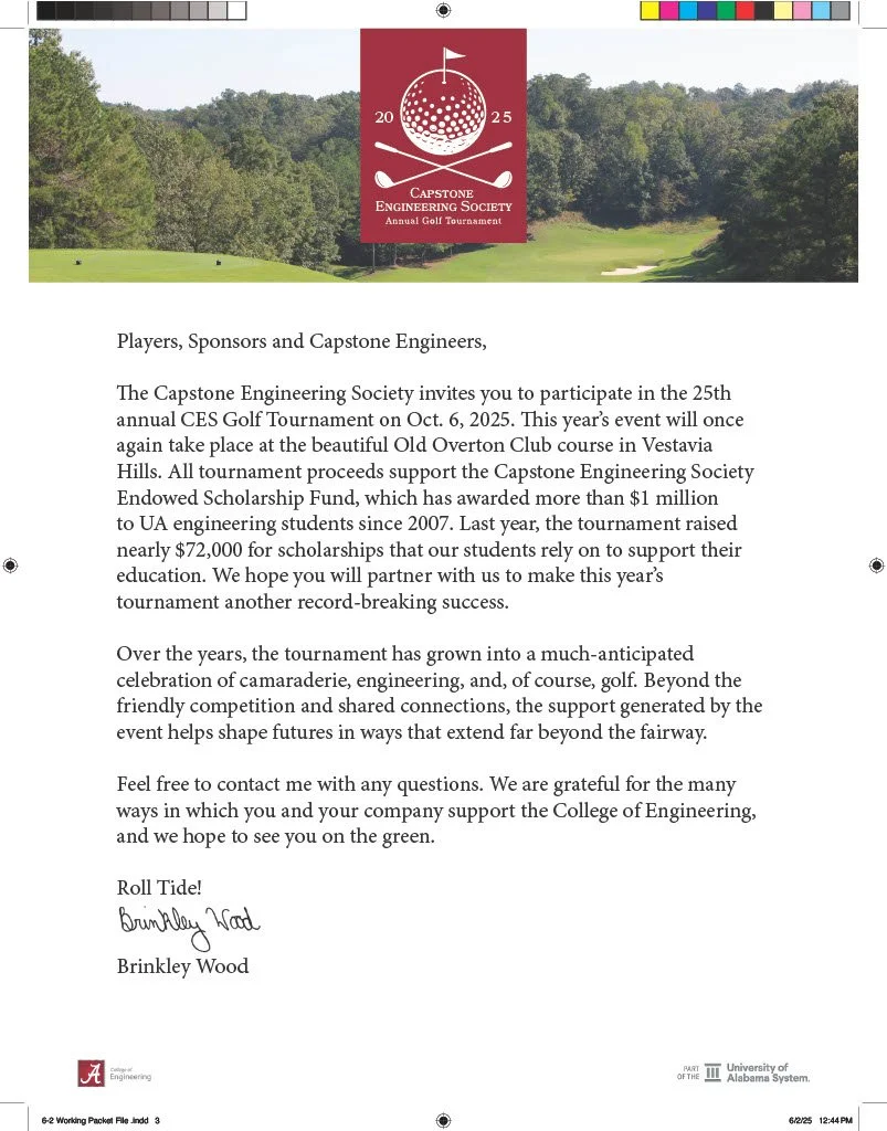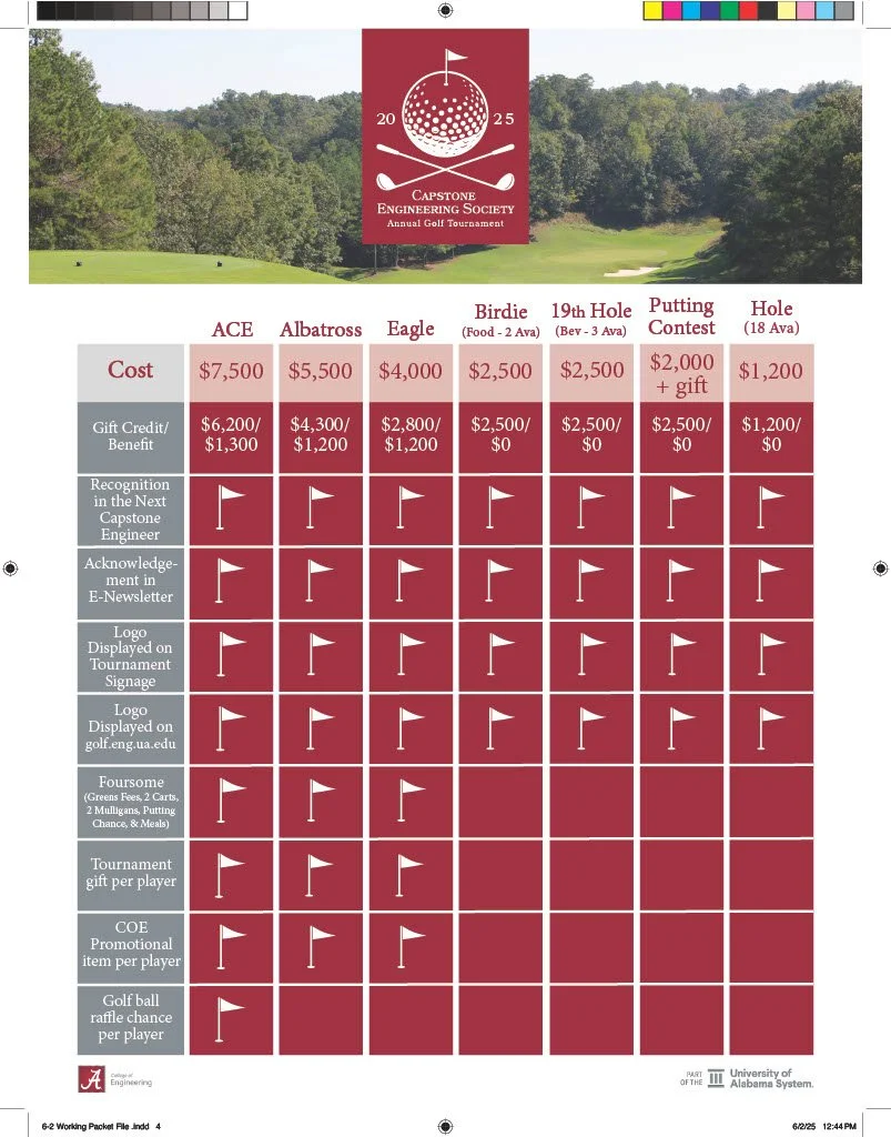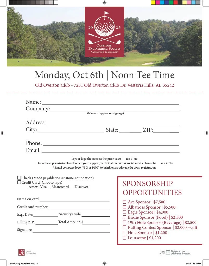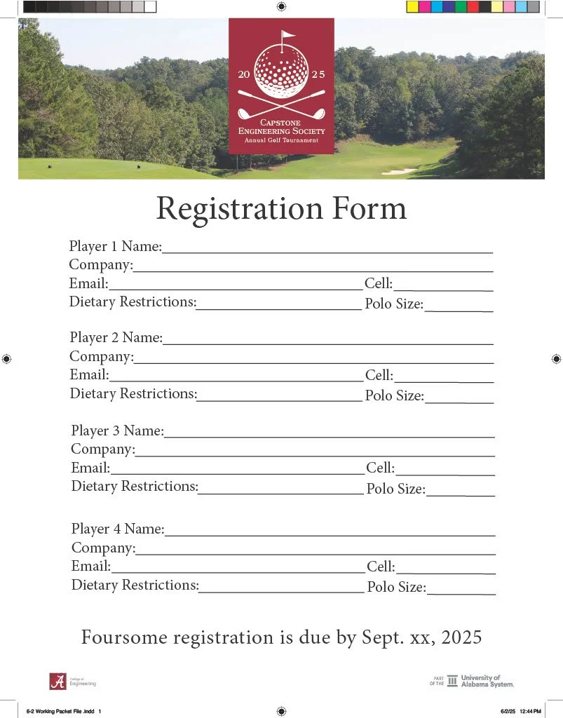 Designed the registration packet and developed a versatile, evolving logo for the Capstone Engineering Society Annual Golf Tournament.