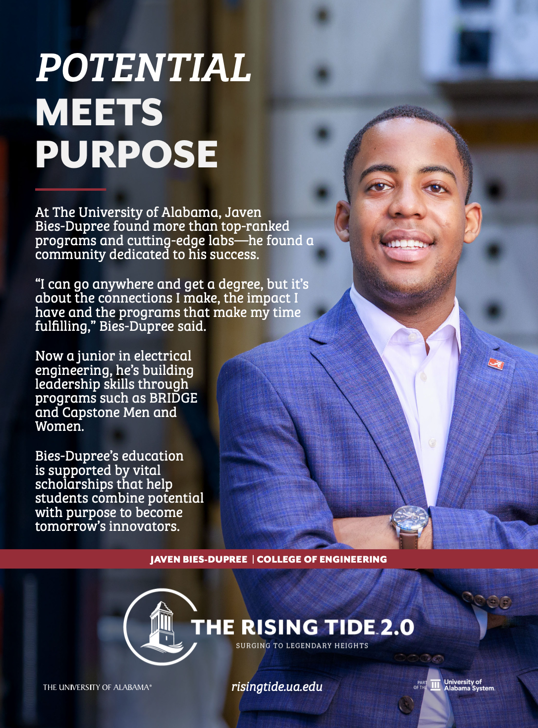 Designed The Styslinger College of Engineering annual Magazine’s Capital Campaign advertisement. The advertisement promotes how The Rising Tide 2.0 Capital Campaign shapes specific students’ college lives and propels them into their careers.