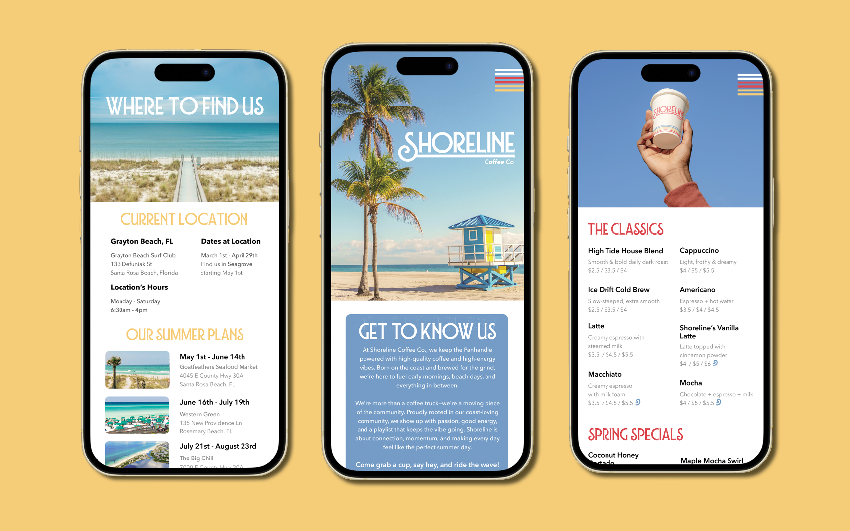 "Our mission is simple: bring people together, energize the day, and serve coffee that hits just right. We’re here for early risers, last-minute planners, chill seekers, and wave chasers. No matter who you are or where you're headed, Shoreline is your go-to stop for killer coffee and even better vibes.